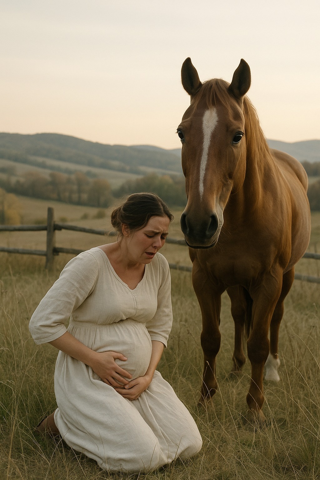 Când a sosit ambulanța, salvatorii au fost șocați: un cal mare zăcea lângă femeia însărcinată, împiedicând pe oricine să se apropie până când Emily a șoptit: „E în regulă, fată… Sunt ai noștri.”